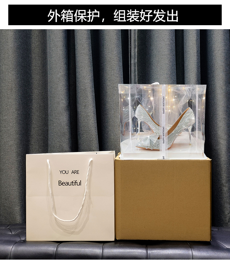 商品名称:lilywei法式高跟鞋Lily Wei水晶新娘鞋香槟金色大码细跟婚鞋蝴蝶结旗舰同款